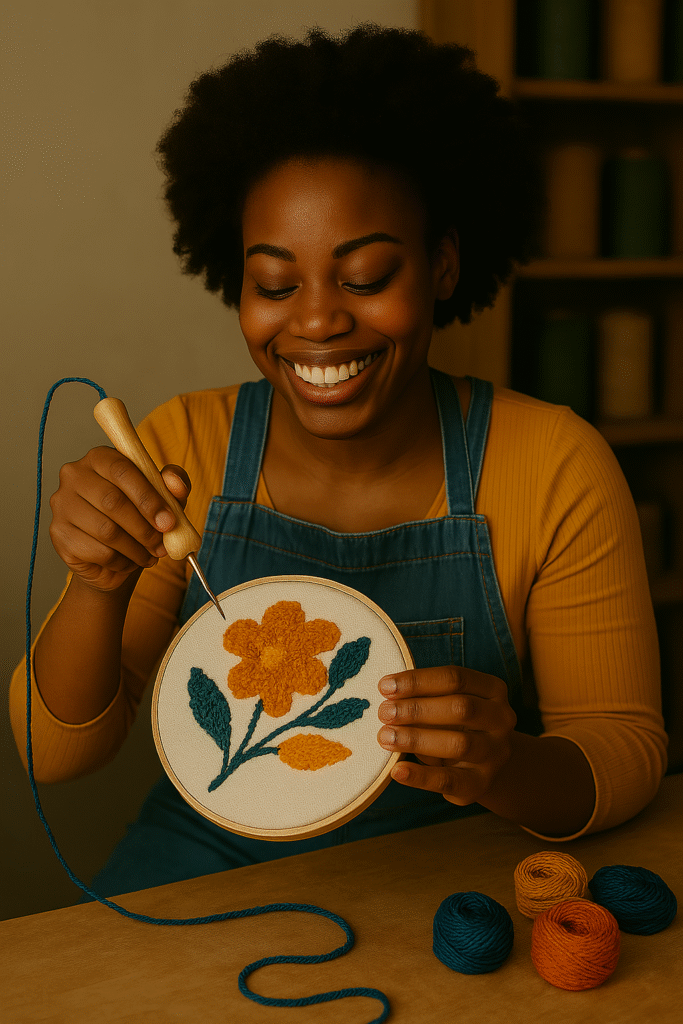 🧶 Atelier Punch Needle : Broderie en Relief & Déco Douce 🎨 Description de l’activité :Le punch needle est une